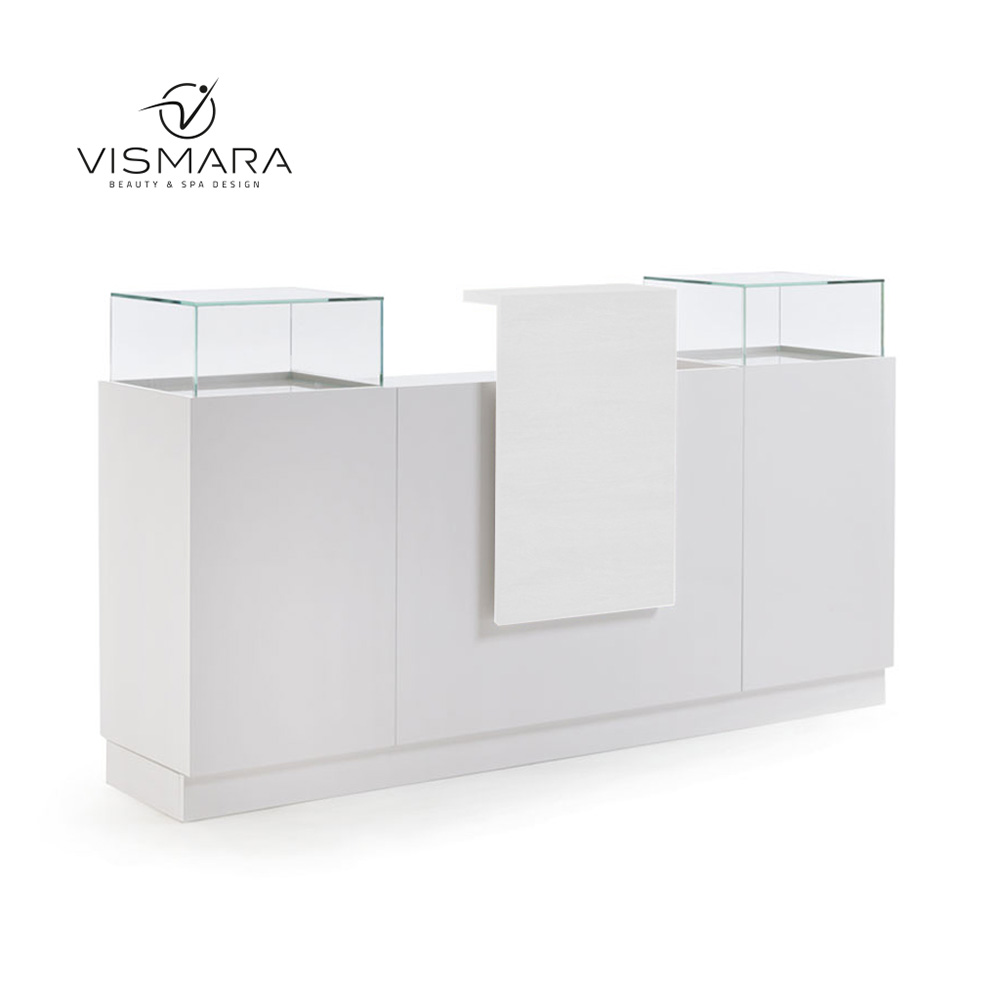 Reception desk in matte white melamine.